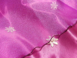 強光沢のピンクのバックサテンシャンタンに、パープルのスパークオーガンジーを合わせた、